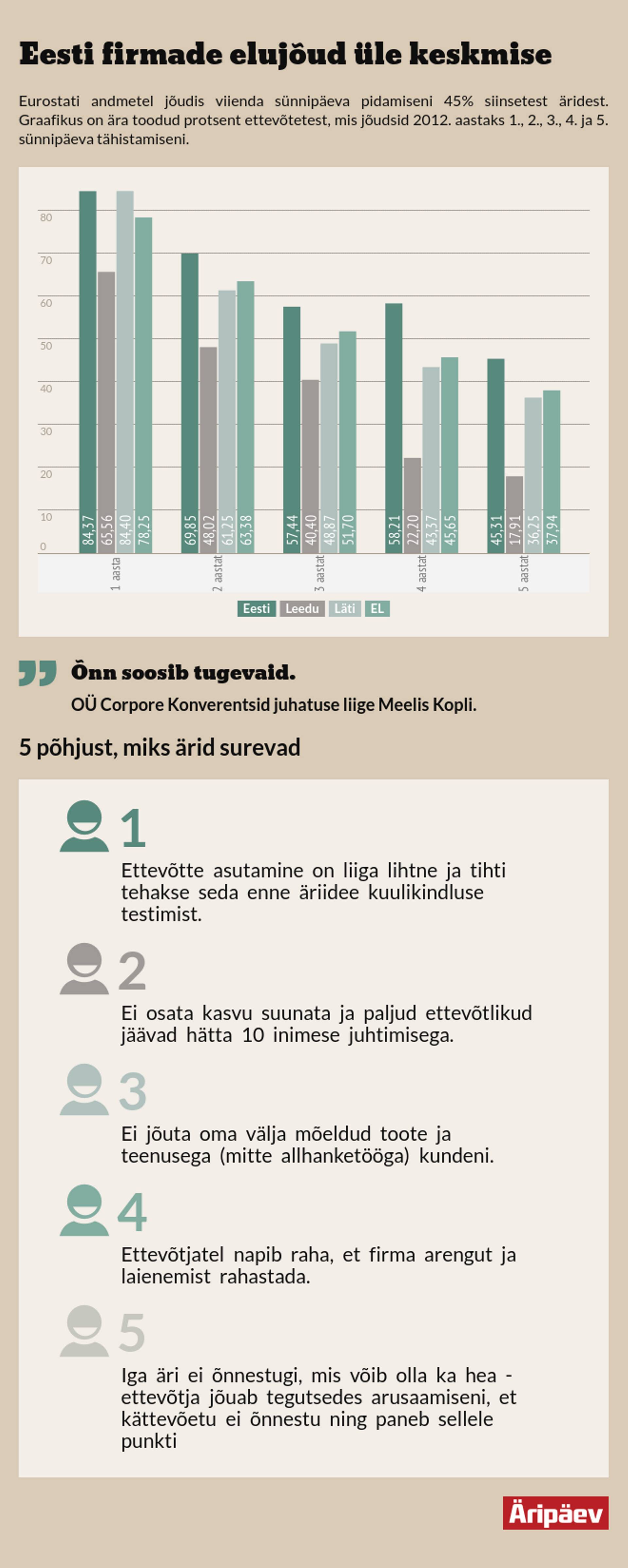 Ehkki firma asutamine ja ettevõtlusega alustamine on Eestis lihtne, ei ela lõviosa siinsetest firmadest viienda sünnipäevani.